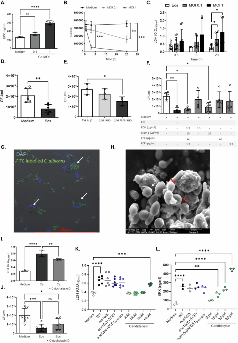 In this work, authors show that via CD48–Als6 interaction, eosinophils can kill Candida albicans in vitro and protect against systemic candidiasis in vivo, reducing the fungal growth and improving survival of mice.